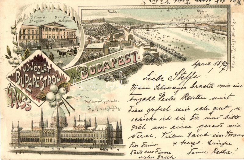 1897 (Vorläufer!) Budapest, Országház, Nemzeti Múzeum, Buda látképe, t... https://www.darabanth.com/de/285-Fernauktion/285.0/Ansichtskarten/Ungarn~200005/1897-Vorlaufer-Budapest-Orszaghaz-Nemzeti-Muzeum-Buda-latkepe-telen-Ottmar-Zieher-lit~II1485018