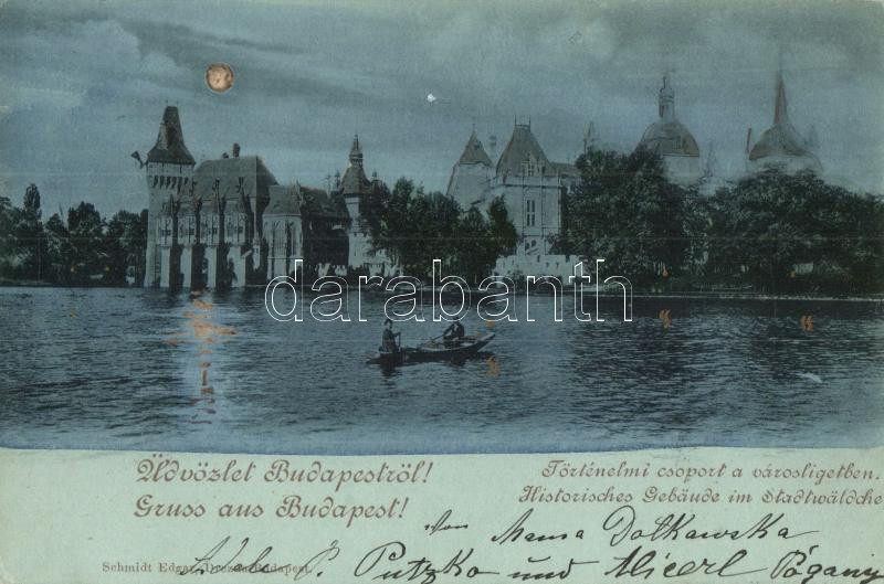 Beschreibung: 1899 Budapest XIV. Városliget, Történelmi csoport este, Schmidt Edgar kiadása (EK)