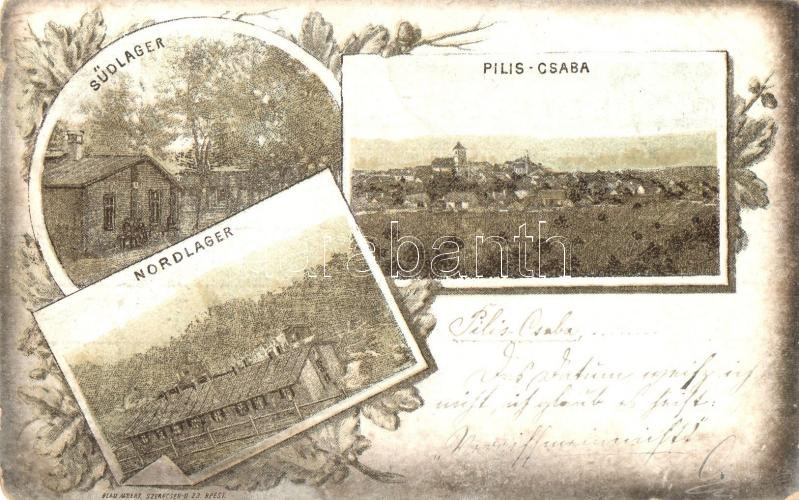 1899 Piliscsaba, Látkép, katonai tábor, északi és déli barakk, Blau Al... https://www.darabanth.com/de/285-Fernauktion/285.0/Ansichtskarten/Ungarn~200005/1899-Piliscsaba-Latkep-katonai-tabor-eszaki-es-deli-barakk-Blau-Albert-litho-kopott-sarka~II1483796
