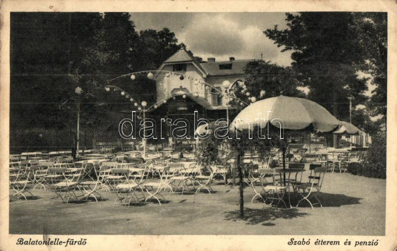 Balatonlelle-fürdő, Szabó étterem és penzió (EK) https://www.darabanth.com/de/285-Fernauktion/285.0/Ansichtskarten/Ungarn~200005/Balatonlelle-furdo-Szabo-etterem-es-penzio-EK~II1488098