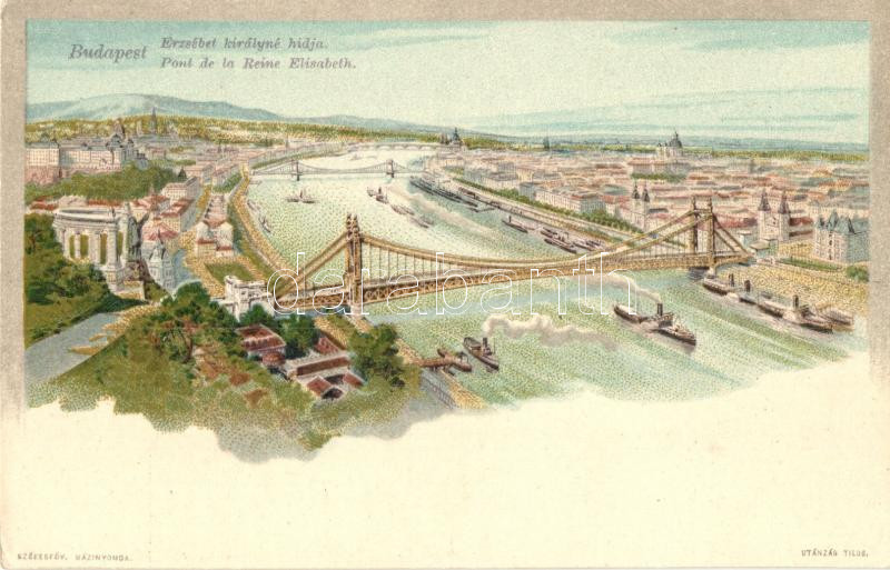 Budapest, Erzsébet királyné híd, hajók litho https://www.darabanth.com/de/285-Fernauktion/285.0/Ansichtskarten/Ungarn~200005/Budapest-Erzsebet-kiralyne-hid-hajok-litho~II1483744