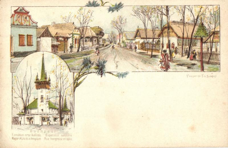 Beschreibung: Budapest, Ezredéves Országos Kiállítás, Magyar utca és templom, Posner és Fia, litho 2 Kr Ga. s: Cserna (EK)