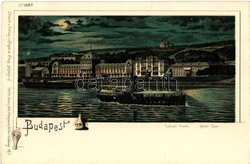 Budapest II. Császár fürdő, gőzhajó, este, Regel &Krug No. 1887. litho https://www.darabanth.com/de/285-Fernauktion/285.0/Ansichtskarten/Ungarn~200005/Budapest-II-Csaszar-furdo-gozhajo-este-Regel-Krug-No-1887-litho~II1483712
