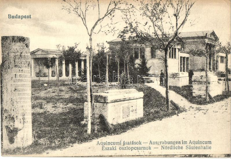 Budapest III. Aquincumi ásatások, északi oszlopcsarnok (EK) https://www.darabanth.com/de/285-Fernauktion/285.0/Ansichtskarten/Ungarn~200005/Budapest-III-Aquincumi-asatasok-eszaki-oszlopcsarnok-EK~II1484049