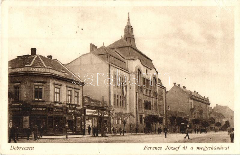 Debrecen, Ferenc József út, megyeháza, Arany Angyal gyógyszertár, Fran... https://www.darabanth.com/de/285-Fernauktion/285.0/Ansichtskarten/Ungarn~200005/Debrecen-Ferenc-Jozsef-ut-megyehaza-Arany-Angyal-gyogyszertar-Frank-Ede-uzlete-EK~II1482794