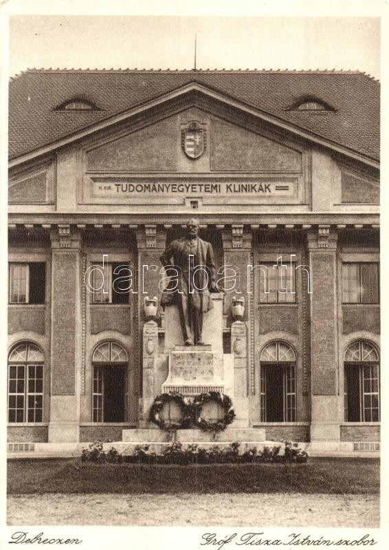Debrecen, Gróf Tisza István szobor, tudományegyetemi klinikák (EK) https://www.darabanth.com/de/285-Fernauktion/285.0/Ansichtskarten/Ungarn~200005/Debrecen-Grof-Tisza-Istvan-szobor-tudomanyegyetemi-klinikak-EK~II1482896