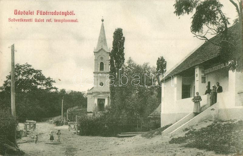 Füzérradvány, Szövetkezeti üzlet, református templom https://www.darabanth.com/de/285-Fernauktion/285.0/Ansichtskarten/Ungarn~200005/Fuzerradvany-Szovetkezeti-uzlet-reformatus-templom~II1484101