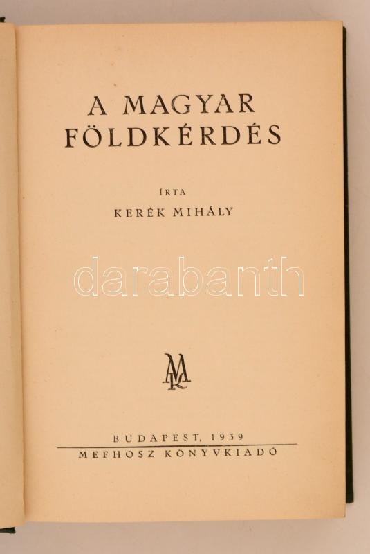 Kerék Mihály: A magyar földkérdés. Budapest, 1939, Mefhosz Könyvkiadó.... https://www.darabanth.com/de/285-Fernauktion/285.0/Bucher/Bucher-Kuche-und-Garten~100035/Kerek-Mihaly-A-magyar-foldkerdes-Budapest-1939-Mefhosz-Konyvkiado-Kiadoi-egeszvaszon-~II1406780