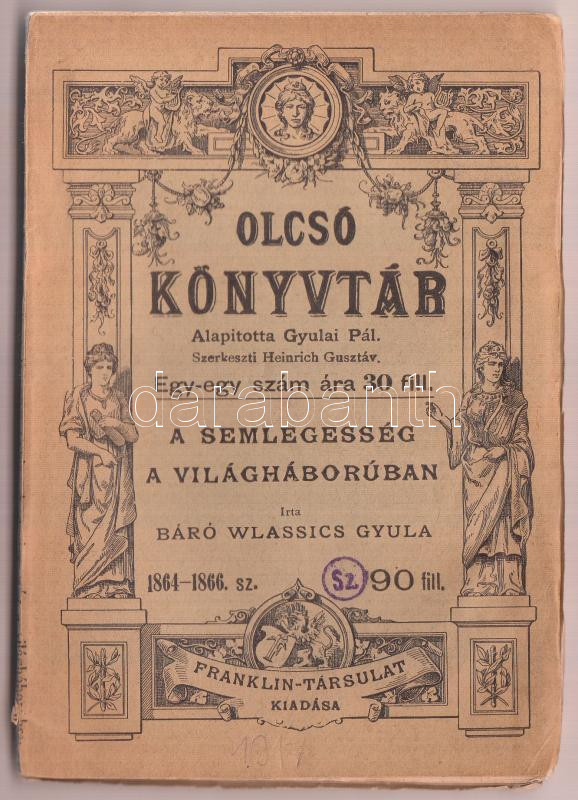 Báró Wlassics Gyula: A semlegesség a világháborúban. Olcsó Könyvtár. B... https://www.darabanth.com/de/285-Fernauktion/285.0/Bucher/Bucher-Militaria~100032/Baro-Wlassics-Gyula-A-semlegesseg-a-vilaghaboruban-Olcso-Konyvtar-Bp-1917-Franklin-K~II1490763