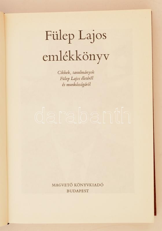 Fülep Lajos emlékkönyv. Cikkek, tanulmányok, Fülep Lajos életéről és munkásságáról. Budapest, 1985, Magvető könyvkiadó. Kiadói aranyozott műbőr kötés, fekete-fehér fotókkal. Jó állapotban.