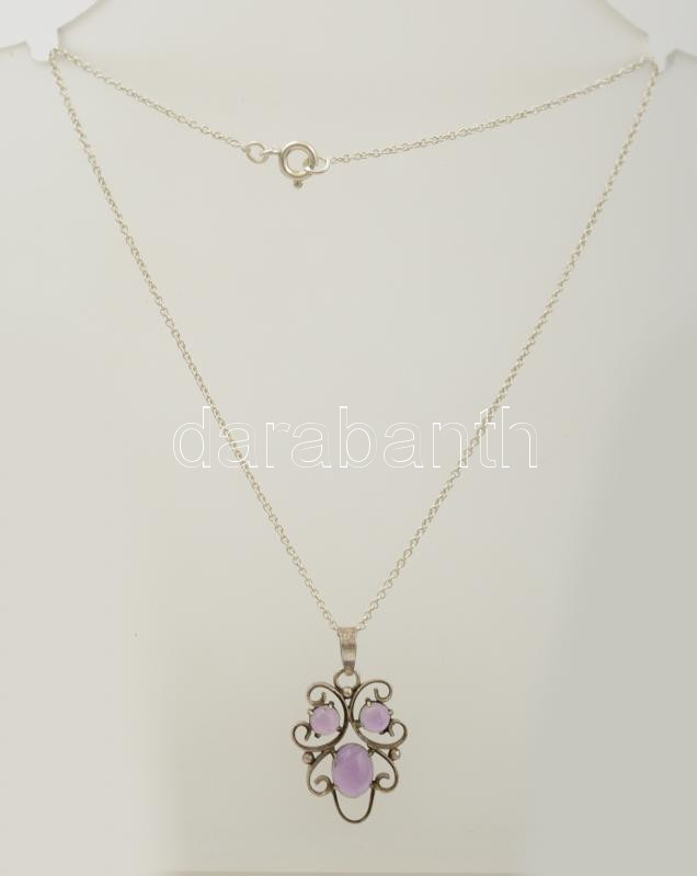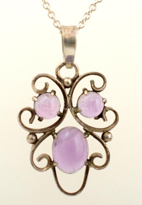 Beschreibung: Ezüst (Ag.) nyaklánc ametiszt kövekkel , jelzett, h:18 cm, bruttó:1 g