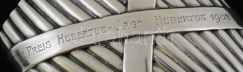 Beschreibung: Ezüst(Ag) "II. Preis Hubertus-Jagd 1908" vadászdíj, jelzett, 8x7,5 cm, nettó: 84,9 g