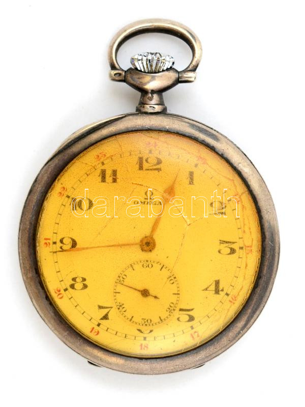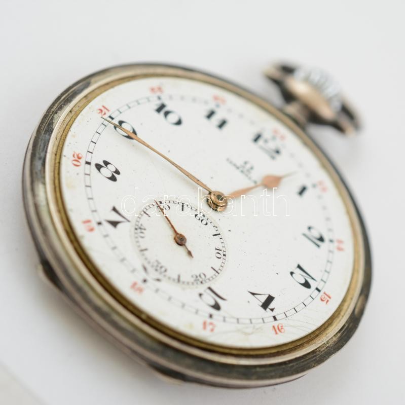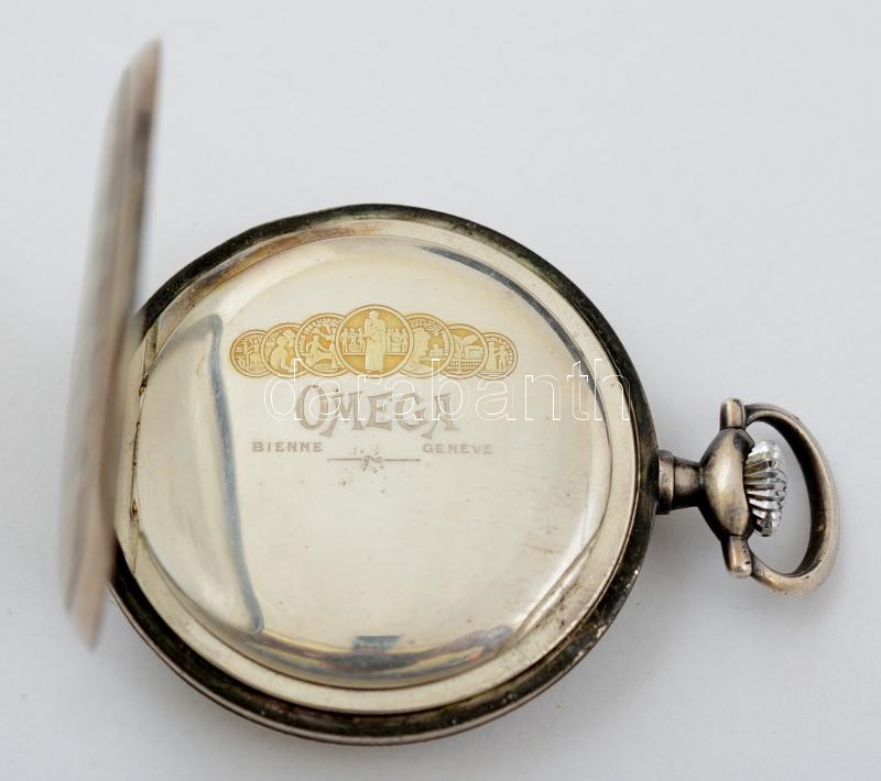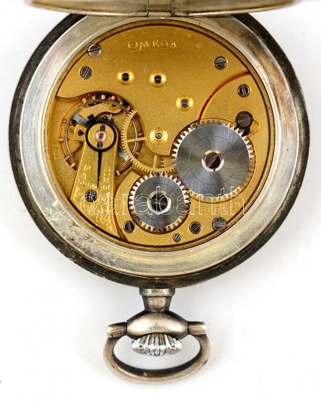 Beschreibung: Omega ezüst (Ag.) zsebóra, sérült előlappal, jelzett, nem működik, bruttó 79,2 g