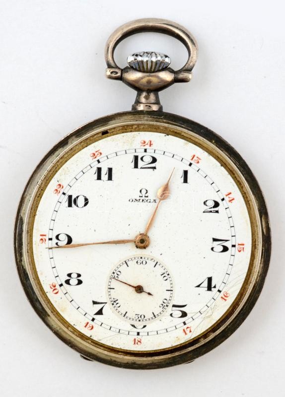 Omega ezüst (Ag.) zsebóra, sérült előlappal, jelzett, nem működik, bru... https://www.darabanth.com/de/285-Fernauktion/285.0/Juwelen/Juwelen~100043/Omega-ezust-Ag-zsebora-serult-elolappal-jelzett-nem-mukodik-brutto-79-2-g~II1493852