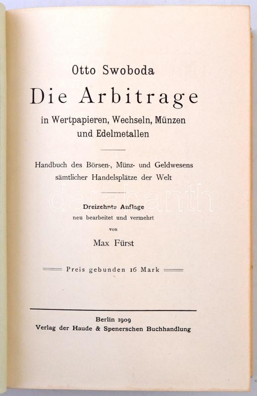 Otto Swoboda: Die Arbitrage in Wertpapieren, Wechseln, Münzen und Ede... https://www.darabanth.com/de/285-Fernauktion/285.0/Numismatik/Numismatische-Literatur~300002/Otto-Swoboda-Die-Arbitrage-in-Wertpapieren-Wechseln-Munzen-und-Edelmetallen-Berlin-1909-Ver~II1487828