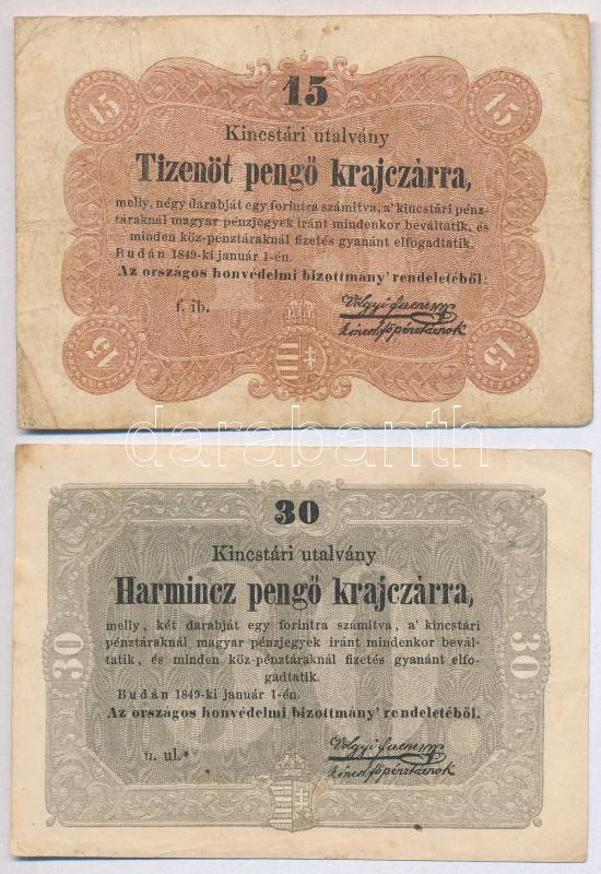 Beschreibung: 1849. 15kr + 30kr "Kossuth bankó" T:III