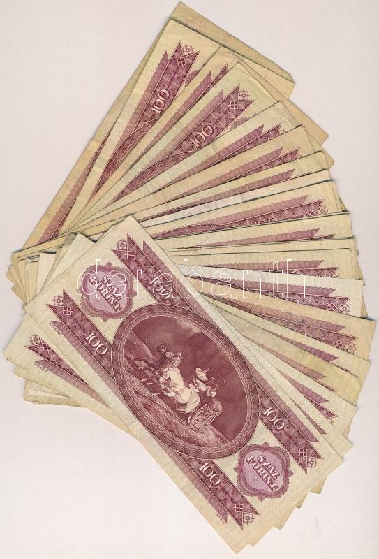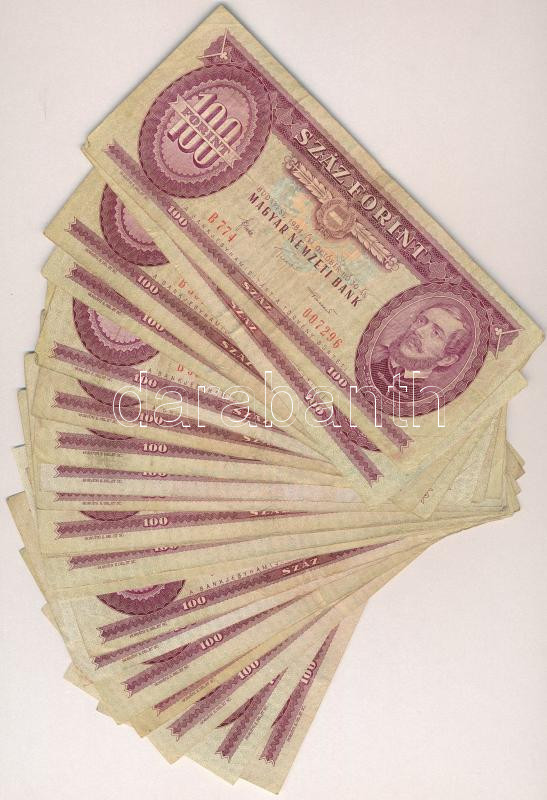 1984. 100Ft (25x) T:III,III- https://www.darabanth.com/de/285-Fernauktion/285.0/Numismatik/Ungarische-Banknoten~300006/1984-100Ft-25x-TIII-III-~II1493523