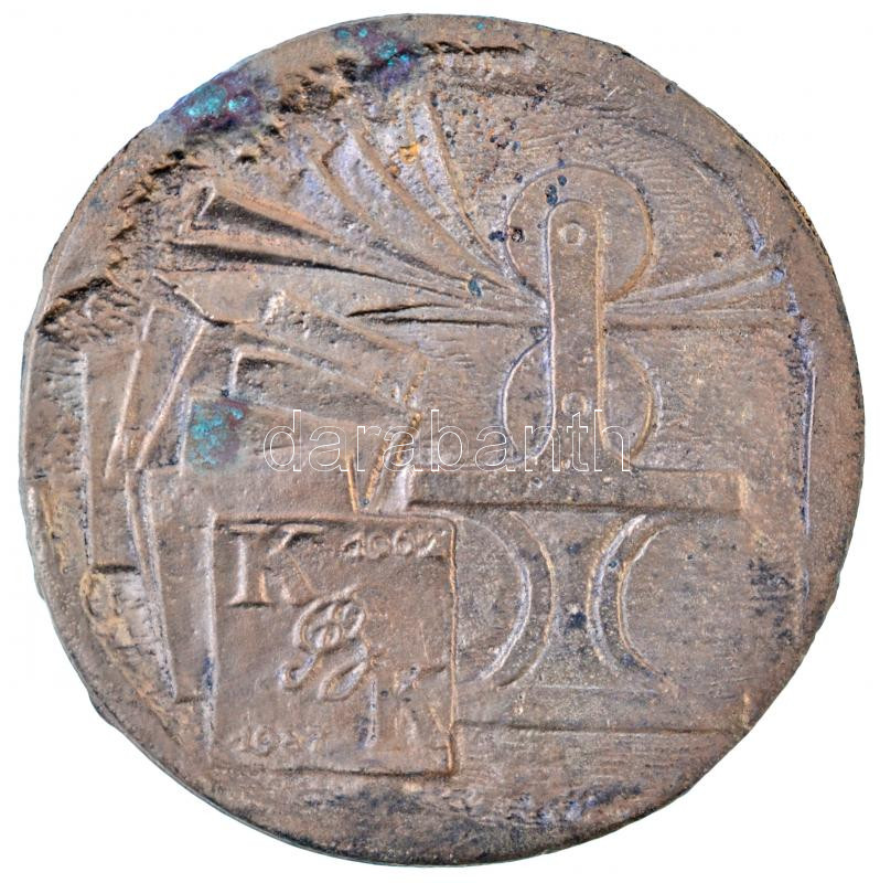 Soltra Elemér (1922-2013.) 1987. "25 éves a pécsi Kisgrafika Barátok Köre" Br plakett (91mm) T:2 kis patina