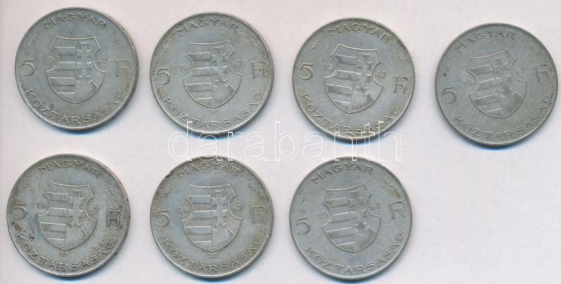 Beschreibung: 1947. 5Ft Ag "Kossuth" (7x) T:2-3 ph., kis patina