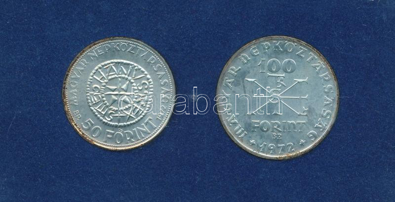 1972. 50Ft Ag + 100Ft Ag "Szent István" pár T:BU kis patina ... https://www.darabanth.com/de/285-Fernauktion/285.0/Numismatik/Ungarische-Munzen-und-Munzen-mit-ungarischem-Munzzeichen~300007/1972-50Ft-Ag-plus-100Ft-Ag-Szent-Istvan-par-TBU-kis-patina-Adamo-EM38-EM39~II1484128