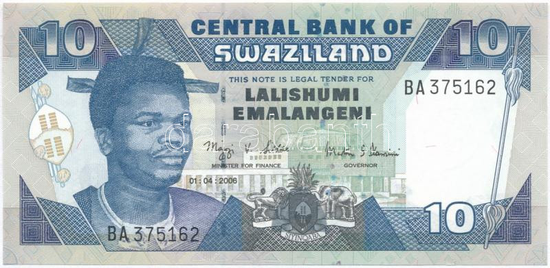 Swaziland 2006. 10 Emalangeni C:UNC https://www.darabanth.com/de/285-Fernauktion/285.0/Numismatik/Weltweit-Banknoten~300011/Szvazifold-2006-10E-TI--Swaziland-2006-10-Emalangeni-CUNC~II1471309