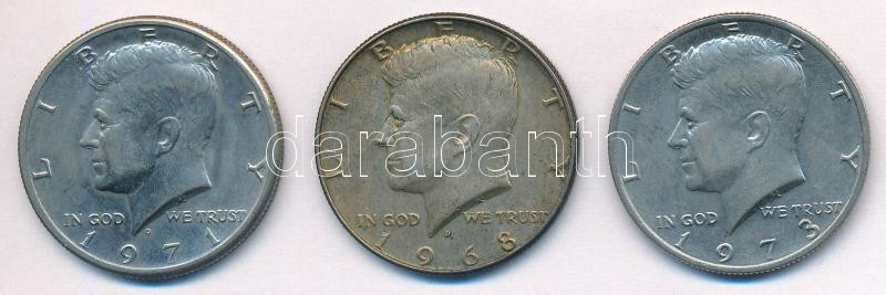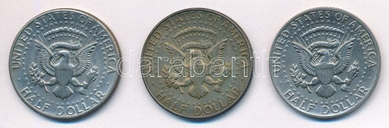 Amerikai Egyesült Államok 1968D 1/2$ Ag "Kennedy" + 1971D 1/2$ Cu-Ni "Kennedy" + 1973. 1/2$ Cu-Ni "Kennedy" T:2
