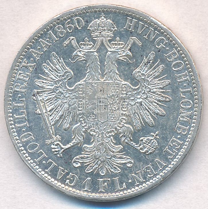 Ausztria 1860A 1Fl Ag "Ferenc József" T:1-,2 apró ph. Austria 1860A 1 Florin Ag "Franz Joseph" C:AU,XF tiny edge error Krause KM#2219
