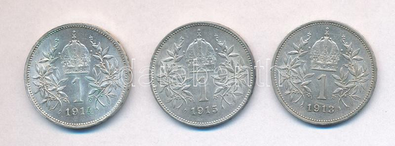 Beschreibung: Ausztria 1913. 1K Ag "Ferenc József" + 1914. 1K Ag "Ferenc József" + 1915. 1K Ag "Ferenc József" T:1-,2