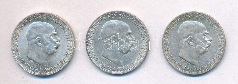 Austria 1913. 1 Corona Ag "Franz Joseph" + 1914. 1 Corona Ag "Franz Joseph" + 1915. 1 Corona Ag "Franz Joseph" C:AU,XF