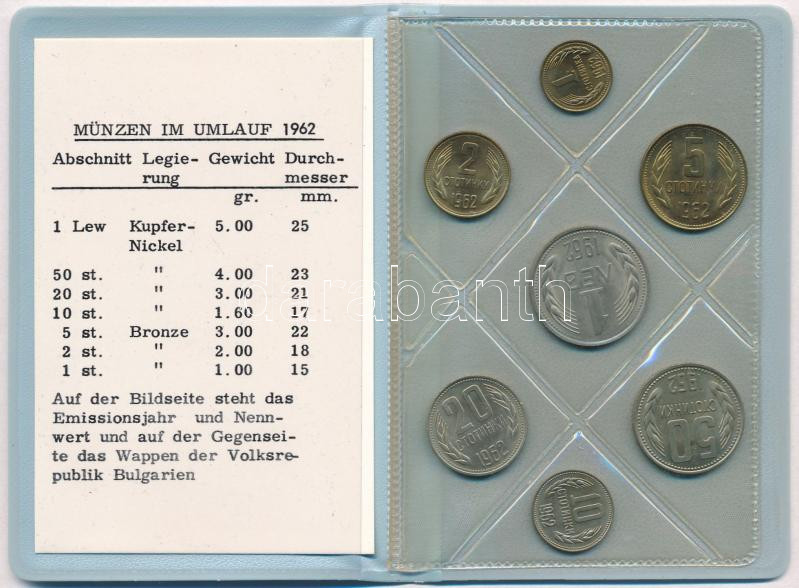 Bul... https://www.darabanth.com/de/285-Fernauktion/285.0/Numismatik/Weltweit-Munzen~300012/Bulgaria-1962-1st-1L-7xklf-db-os-forgalmi-szett-foliatokban-T1---Bulgaria-1962-1-Stotinka--1-L~II1468956