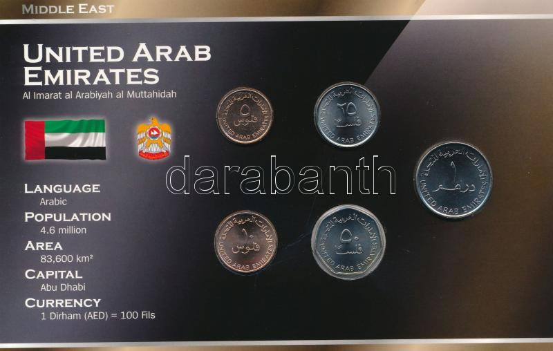 United Arab Emirates 2001-2007. 5 Fils - 1 Dirham (5xdiff) coin set "World Money" C:UNC