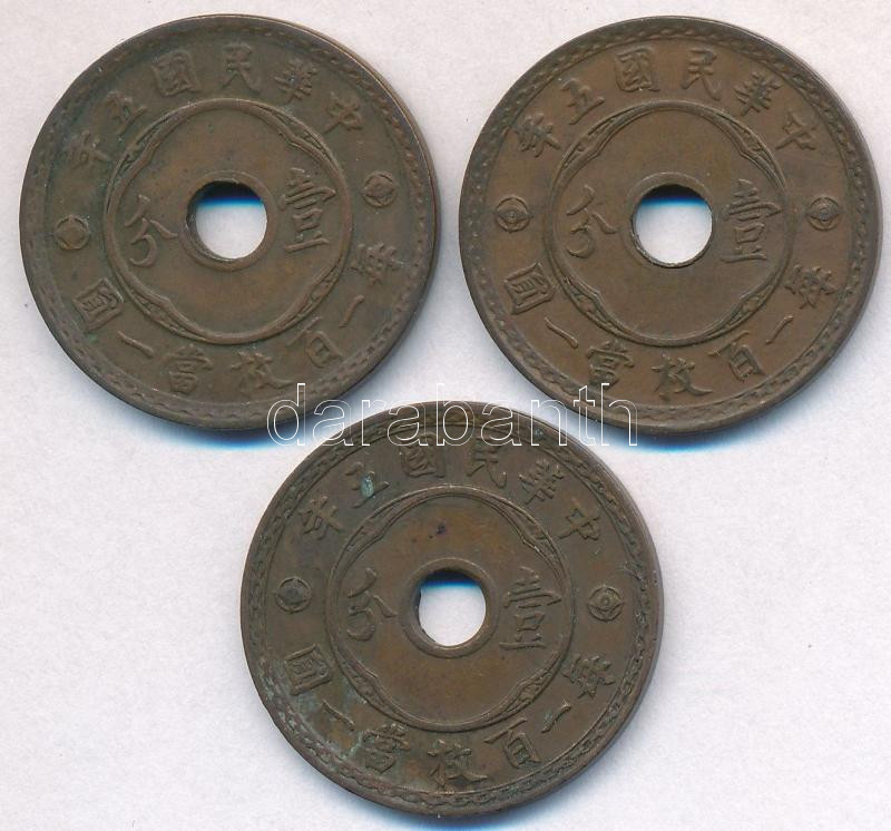 Beschreibung: Kínai Köztársaság 1916. 1F Br (3x) T:2,2-