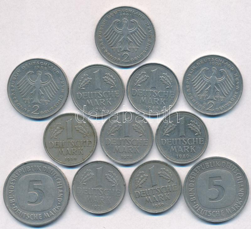 FRG 1950-1996. 1 Mark (7x) + 2 Mark (3xdiff) + 5 Mark (2xdiff) C:XF,VF edge error