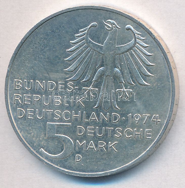 NSZK 1974D 5M Ag "Immanuel Kant születésének 250. évfordulója" T:2 FRG 1974D 5 Mark Ag "200th Anniversary - Birth of Immanuel Kant" C:XF Krause KM#139