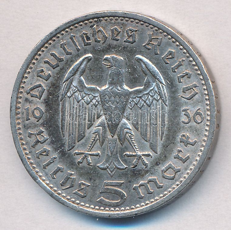 Germ... https://www.darabanth.com/de/285-Fernauktion/285.0/Numismatik/Weltweit-Munzen~300012/Nemet-3-Birodalom-1936E-5M-Ag-Hindenburg-T2-2-ph--German-Third-Reich-1936E-5-Mark-Ag-Hindenb~II1473723