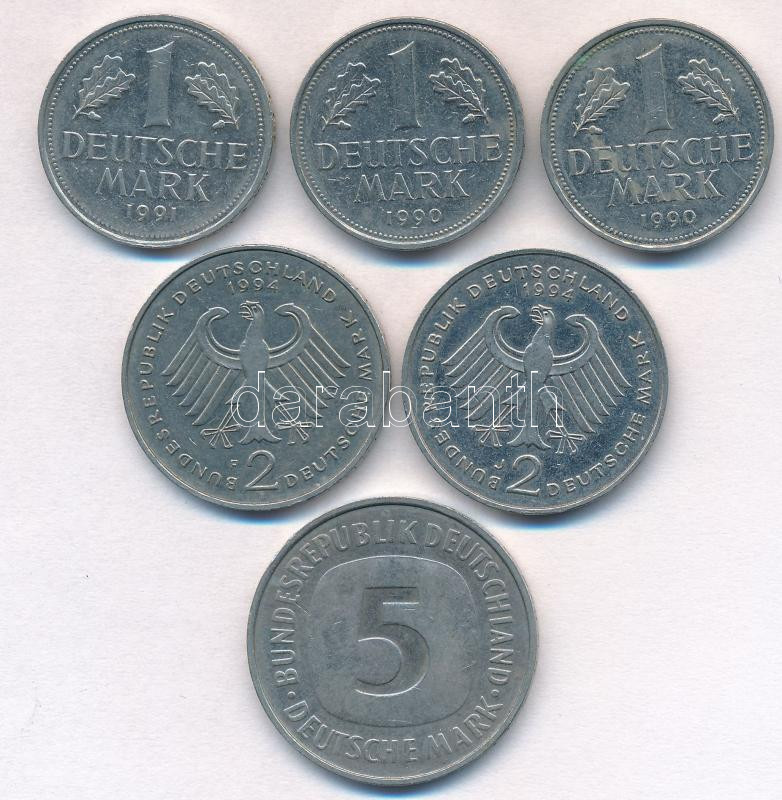 Germany 1990-1... https://www.darabanth.com/de/285-Fernauktion/285.0/Numismatik/Weltweit-Munzen~300012/Nemetorszag-1990-1994-1M-3xklf-plus-2M-2xkl-plus-5M-T2--Germany-1990-1994-1-Mark-3xdiff-plus-2-Mar~II1492979