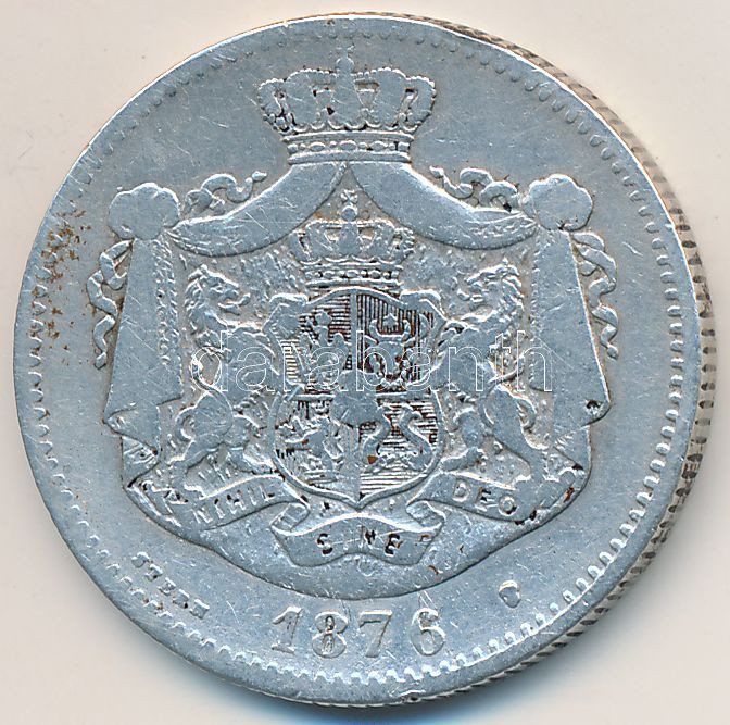 Romania 1876. 2 Lei ... https://www.darabanth.com/de/285-Fernauktion/285.0/Numismatik/Weltweit-Munzen~300012/Romania-1876-2L-Ag-I-Karoly-T2-3--Romania-1876-2-Lei-Ag-Carol-I-CVF-F--Krause-KM238~II1465364