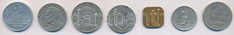 Mixed 8pcs of Central and South American coins, including: Mexico 1950. 25 Centavos Ag + Cuba 1962. 25 Centavos Cu-Ni + 1990. 3 Pesos Cu-Ni + Panama 1966. 1/4 Balboa Cu-Ni + Suriname 1962 5 Centavos Ni-Brass + Brasil 1959. 2 Cruseiros Al + 1970. 20 Centavo Cu-Ni C:XF,VF