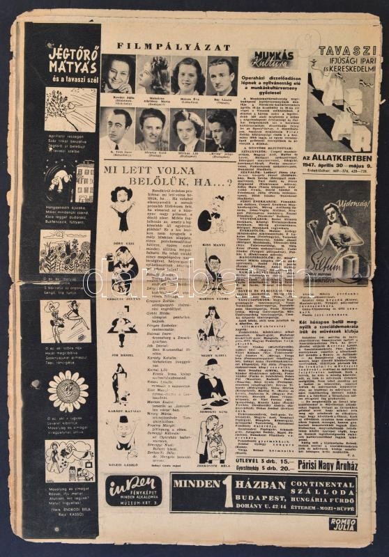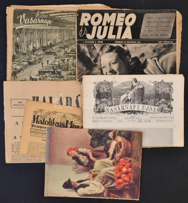 1918-1947 15 Szám különféle naplilapokból (Magyar Újság, Esztergom és Vidéke, Erdélyi Hirlap, Uj Lap, Politika, Romeo és Julia, Katolikus Missziók, Haladás, Nemzeti Újság, Pesti Hirlap Vasárnapja, Vasárnapi Újság, Magyar Katonaújság, Képes Vasárnap), változó állapotban, többnyire szakadozott állapotban.