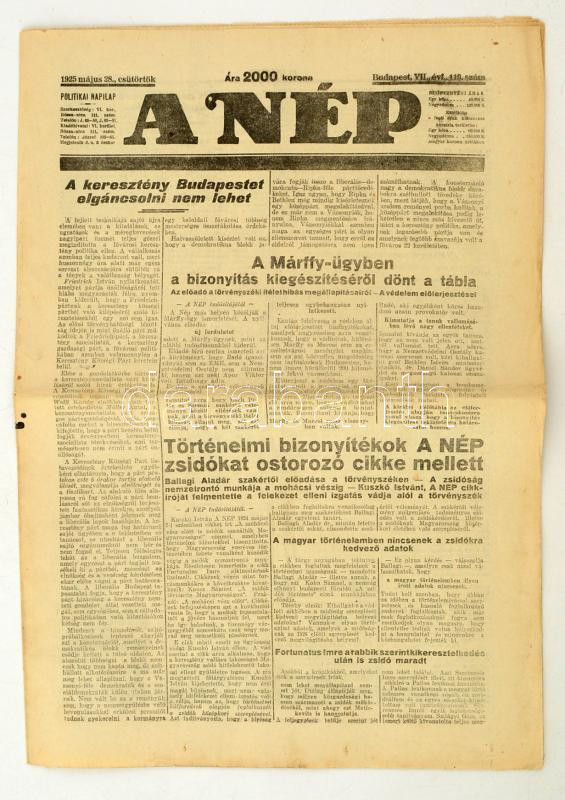 1925 A Nép című politikai napilap VII. évfolyamának 119. száma, benne ... https://www.darabanth.com/de/286-Fernauktion/286.0/Andere-Sammelgebiete/Drucksachen~27/1925-A-Nep-cimu-politikai-napilap-VII-evfolyamanak-119-szama-benne-egy-Amundsenrol-szolo~II1500072