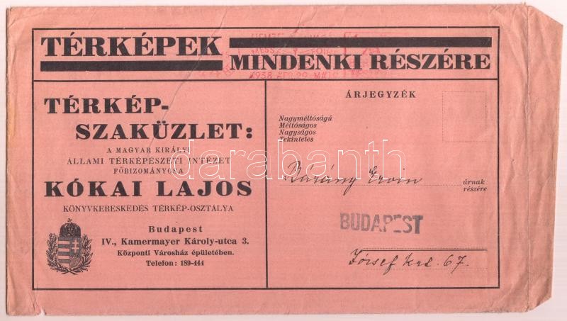 1938 Kókai Lajos térképszaküzletének árjegyzéke, mintával, borítékban https://www.darabanth.com/de/286-Fernauktion/286.0/Andere-Sammelgebiete/Drucksachen~27/1938-Kokai-Lajos-terkepszakuzletenek-arjegyzeke-mintaval-boritekban~II1498057