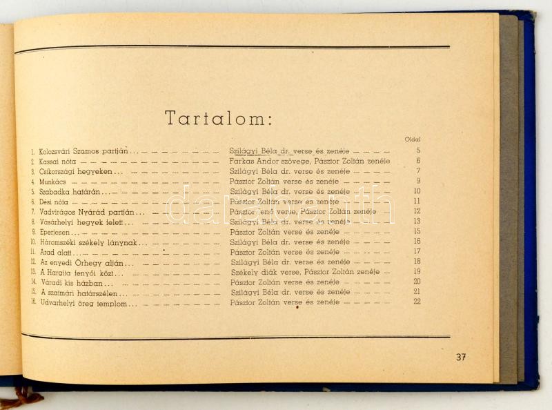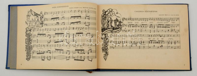 1940 Visszadalolt városok. Oldalankánt önnáló rajzokkal díszített irredenta dalgyűjtemény és kottagyűjtemény erdélyi és felvidéki városok közönségének. Szép állapotban.