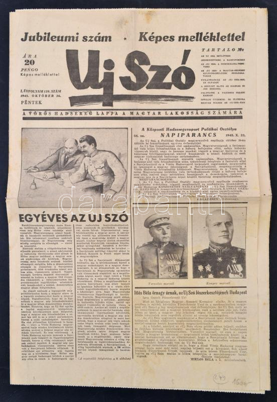 1945 Az Új Szó I. évfolyamának 139. száma, jubileumi szám https://www.darabanth.com/de/286-Fernauktion/286.0/Andere-Sammelgebiete/Drucksachen~27/1945-Az-Uj-Szo-I-evfolyamanak-139-szama-jubileumi-szam~II1498747