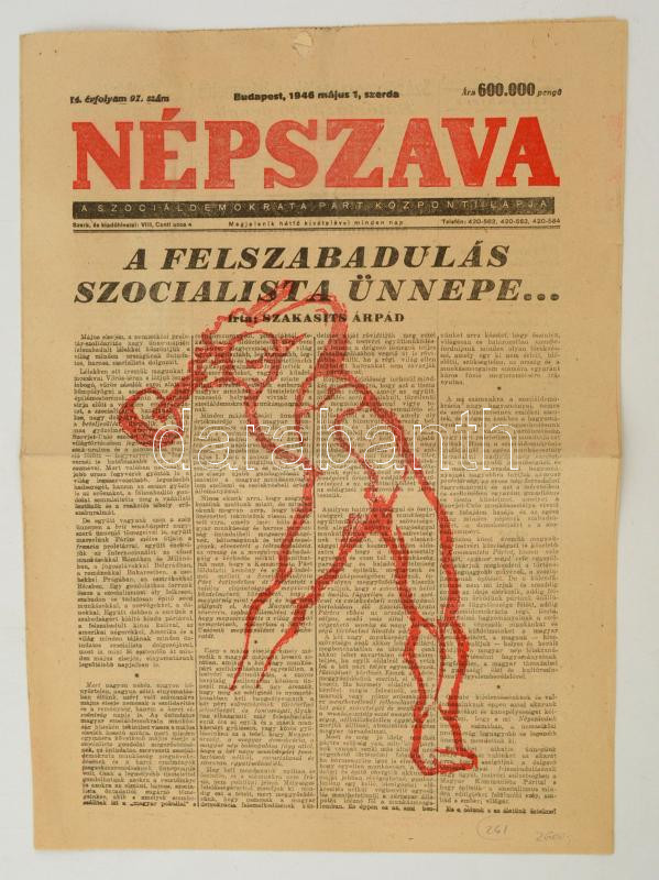 1946 Bp., A Népszava, a Szociáldemokrata Párt Központi Lapja 74. évfol... https://www.darabanth.com/de/286-Fernauktion/286.0/Andere-Sammelgebiete/Drucksachen~27/1946-Bp-A-Nepszava-a-Szocialdemokrata-Part-Kozponti-Lapja-74-evfolyamanak-97-szama~II1498679