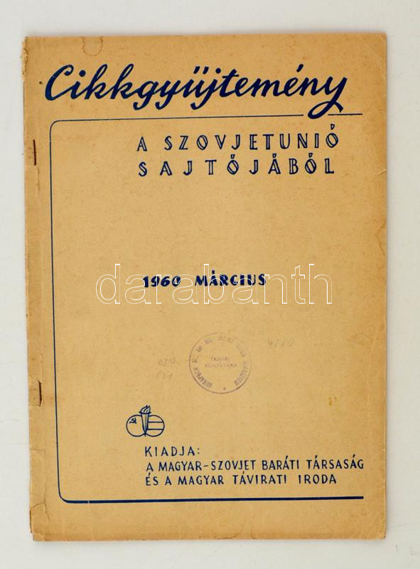 Cikkgyűjtemény a Szovjetunió sajtójából. Bp., 1960, Magyar-szovjet Bar... https://www.darabanth.com/de/286-Fernauktion/286.0/Andere-Sammelgebiete/Drucksachen~27/Cikkgyujtemeny-a-Szovjetunio-sajtojabol-Bp-1960-Magyar-szovjet-Barati-Tarsasag--MTI-T~II1497097