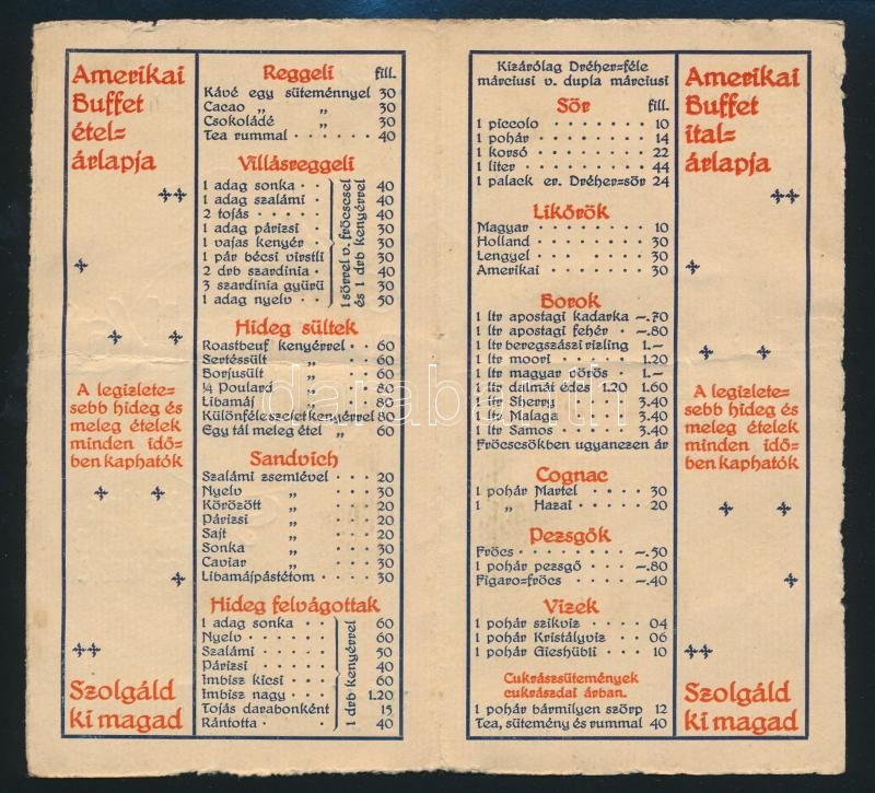 cca 1910 Amerikai Buffet Budapest VII. Menükártya. Bíró és Schwarttz n... https://www.darabanth.com/de/286-Fernauktion/286.0/Andere-Sammelgebiete/Drucksachen~27/cca-1910-Amerikai-Buffet-Budapest-VII-Menukartya-Biro-es-Schwarttz-nyomda~II1497793