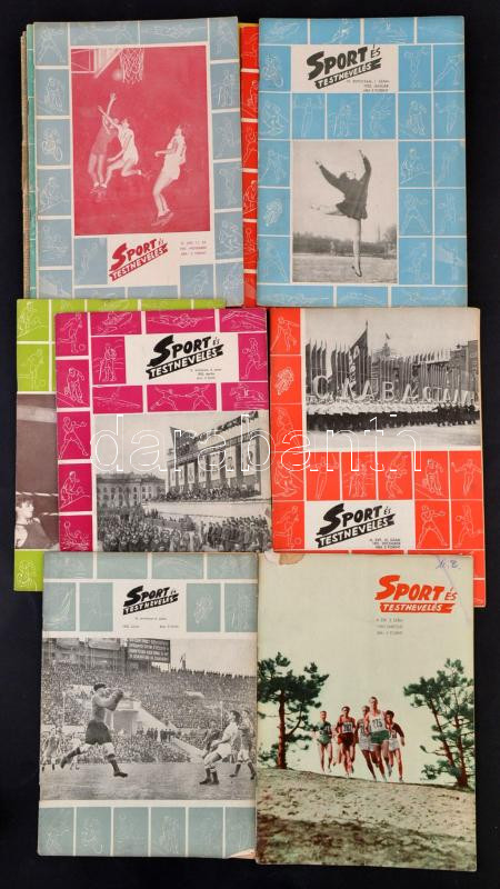 cca 1950-1960 Sportolással kapcsolatos újságok, 15 db: 2 db Sportélet, Főiskolai sport, 5 év Sporteredményei, 11 db Sport és Testnevelés, változó, többnyire kissé szakadozott állapotban.
