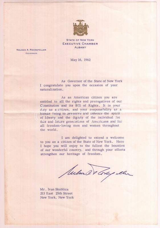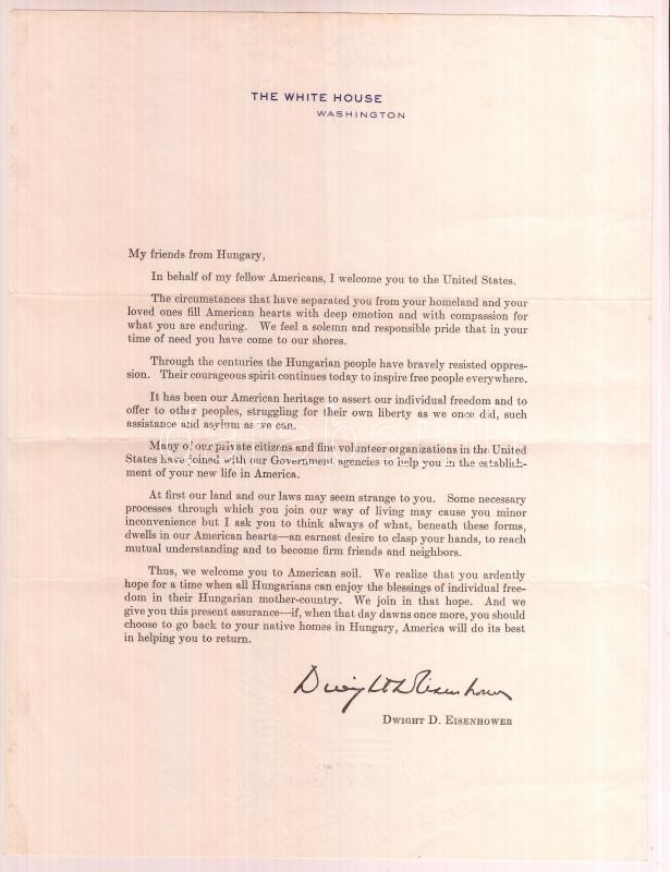 cca 1956-1962 2 db '56-os magyaroknak írt levél, amerikai állampolgárrá válásuk alkalmából, Dwight D. Eisenhower és Nelson A. Rockefeller nyomtatott aláírásával / 2 letters sent to Hungarian 56ers who became American citizens