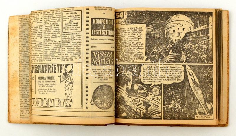 Beschreibung: cca 1960 A Vénusz titka, Jó széllel francia partra c. képregények. Két sorozat újságból kivágva, gondosan egybekötve, jó állapotban, hiánytalanul