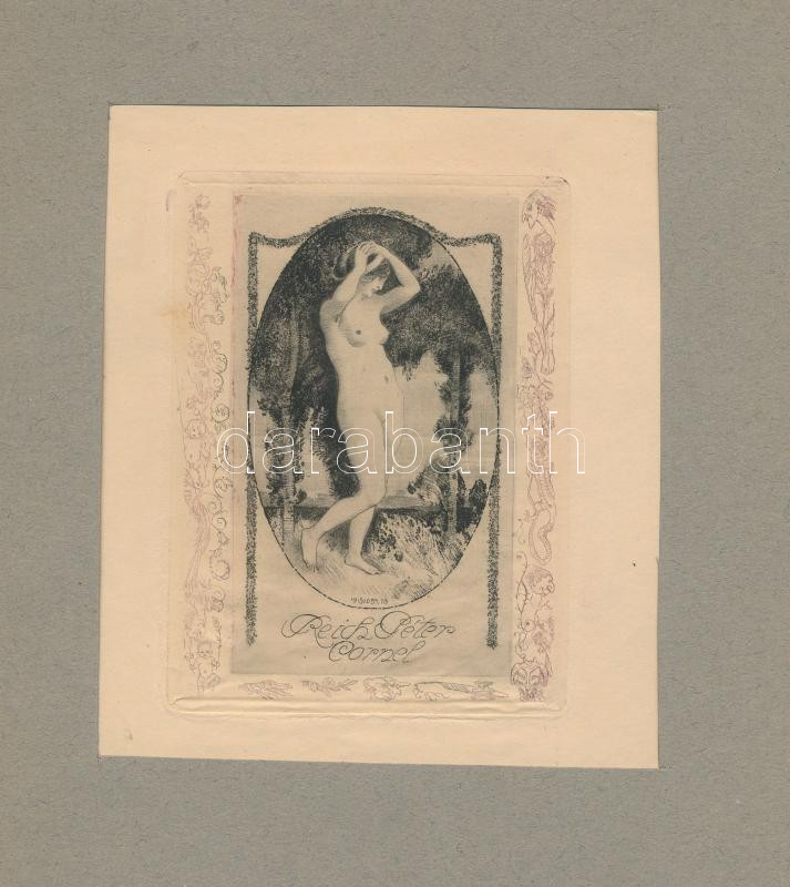 Beschreibung: 1918 Soder jelzéssel: Erotikus ex libris Reich Peter Cornel / Erotic bookplate 13x10 cm paszpartuban